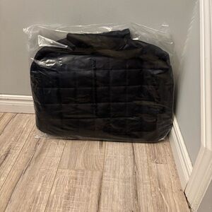 Black quilted bag with top zipper closure, inner pocket and handle with quilted detail. Retail value 74.99 NWT
