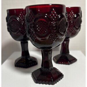 This set of three Avon Cape Cod wine glasses in rich ruby red is a sophisticated addition to any glassware collection. Crafted with intricate detailing, these glasses offer both elegance and functionality, making them ideal for enhancing the presentation of your favorite wines.