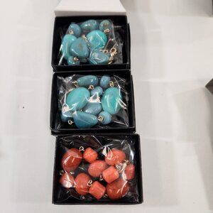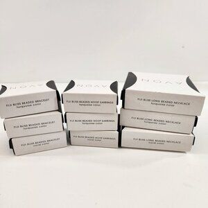Avon Fiji Bliss Beaded Bracelet Long Necklace Hoop Earrings Turquoise & Coral