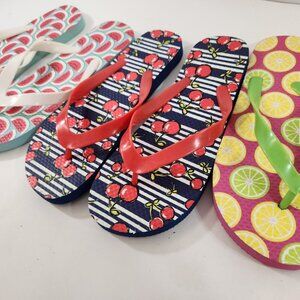 Avon Flip Flop Lot Fruit Theme Size Medium Cherry Watermelon Lemon NEW