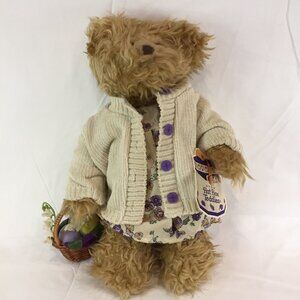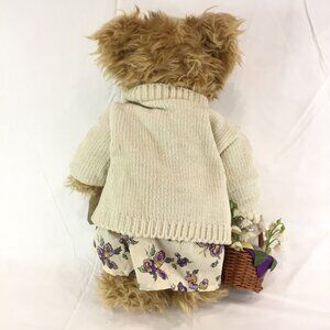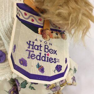 Avon Hat Box Teddy Bear Violet With Basket Adoption Tag Floral Dress Sweater
