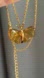 A whimsical GoldTone necklace featuring a semi-transparent amber butterfly pendant that captures the light like a drop of honey. The translucent wings shimmer with golden highlights, perfectly complemented by a textured GoldTone trim and finely detailed chain.