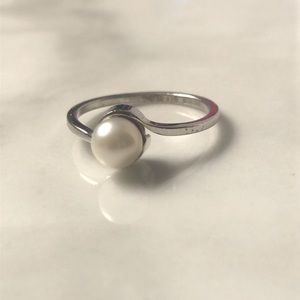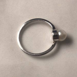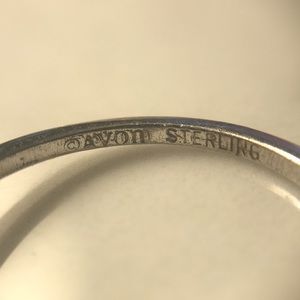 White Pearl Avon ring. Size 5 on a mandrel but due to the design there’s a gap around the setting between the mandrel and the ring meaning it probably fits closer to a 5.5. Good used condition. Sterling Avon is collectable! Purchased from an estate sale.