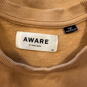 Aware By Vera Moda Crewneck Sweatshirt Camel Brown Womens Size XS 100% Cotton