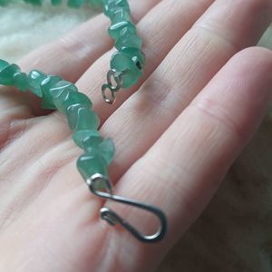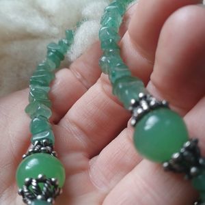 glass vintage beads even have old school bubbles in them. natural rock in string and a large hard acryllic center piece wrapped in copper wire.