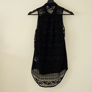 Axara Paris Top Women S Black Sleeveless Button Up High Low Hem Whimsigoth Lace