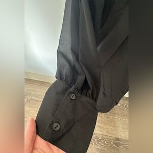 Axara Paris black shirt dress button front mini sheer long sleeves SZ M