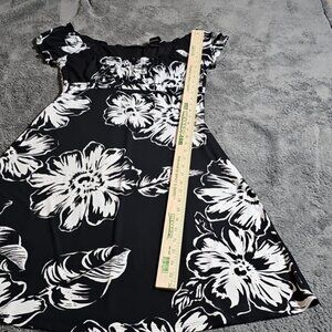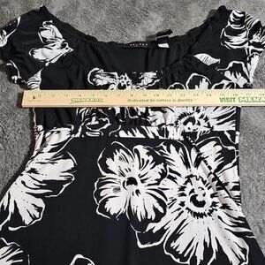 Axcess Liz Claiborne Black & White Floral Midi Dress Stretch Size S