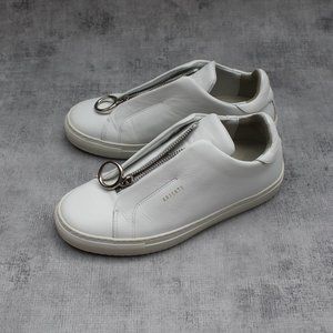 White leather sneakers with zipper.