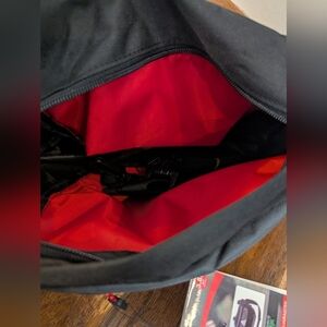Added Benefit: Zippered Main compartment opens towards rider; Zippered internal convenience pocket for keys/phone, etc.; Zippered exterior pocket for additional storage; Includes shoulder strap