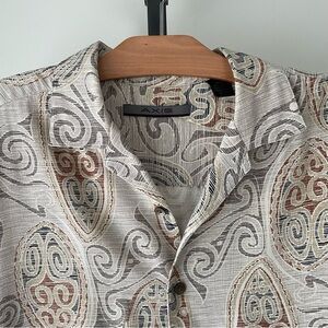 Axis 100% Silk Printed Casual Button Down Short Sleeve Shirt Mens Size Medium
