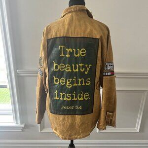 • Oversized military style with lots of authentic army patches