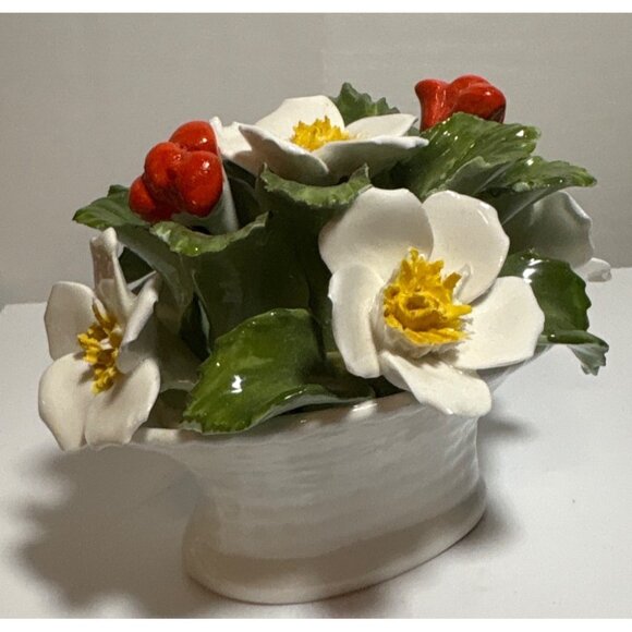 Aynsley December Christmas Rose Floral Arrangement Fine Bone China 3.25" Tall