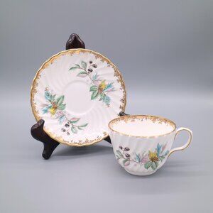 Aynsley Fine Bone China Pattern 2521 Gold Trim Flowers Vintage Cup & Saucer Set