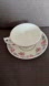 This exquisite Aynsley teacup and saucer set features a delicate floral design in soft pink hues against a pristine white porcelain background.