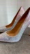 Excellent condition. Only worn once indoors for a photo shoot. These high heels are so sparkly and beautiful. They have an ombre effect that starts at the toe with a lilac purple blueish colours drifting into pink shades toward the heel.