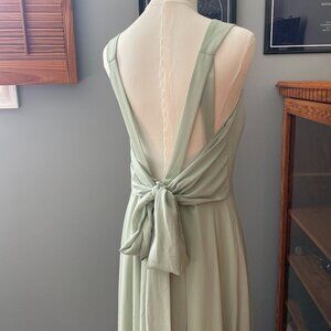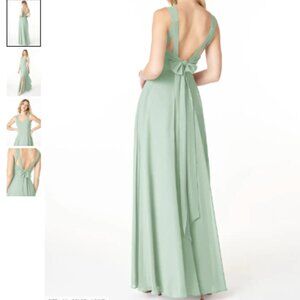 Details: From the Azazie website - "Julie is a modern and elegant choice for your leading ladies. Made from chiffon, this sleek bridesmaid dress features a sweetheart neckline with flattering banded straps. Her straps cross over the back bodice and create an interesting multi-strap look that is finished off with an adjustable tie. A full A-line skirt with an alluring side leg slit completes the look."