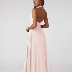 Azazie LongTessie Dress in “Rose Petal” women’s 2 pink chiffon wedding V Neck