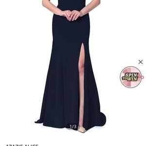 Azazie Navy Off the Shoulder Bridesmaid dress