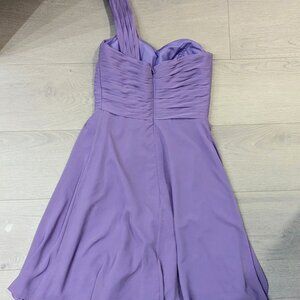 Lavender one-shoulder chiffon dress by Azazie, size A4.