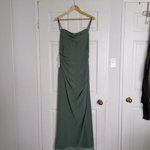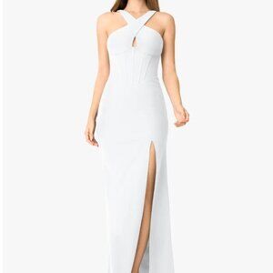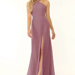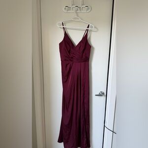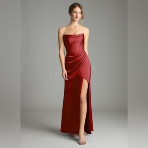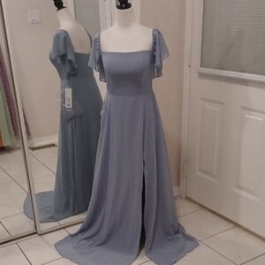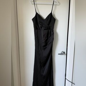 Brand new with tags. Never been worn and no alterations done. bridesmaid/evening maxi gown. Stormy A-line v-neck stretch satin dress. Size A4. Can be tightened at the back.