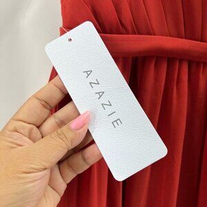 Azazie - Women's Cicely Rust Flowy Lace Chiffon Dress.