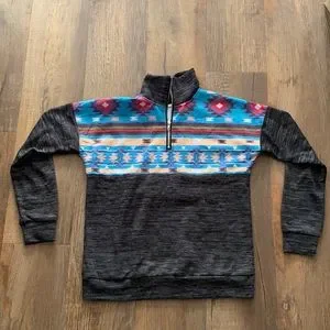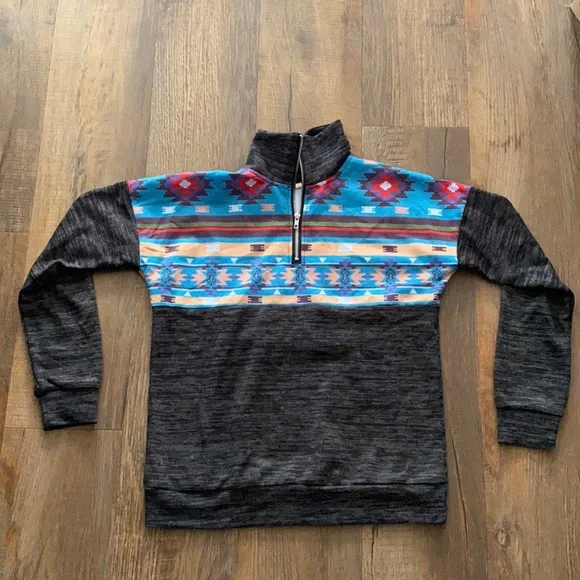 This western inspired Aztec 1/4 zip pullover is perfect for fall time. Light weight. Sized as Large, but fits more like a Small/Medium. Never worn. In perfect condition.
