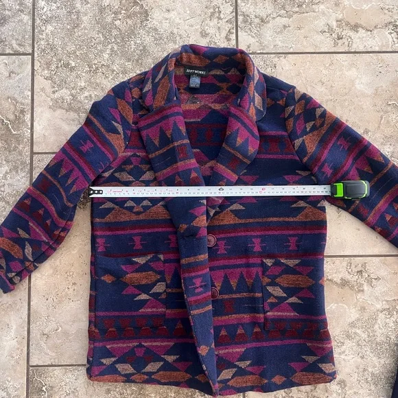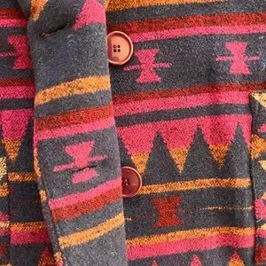 Elevate your style with the Aztec patterned jacket by Dry Creek. Featuring a vibrant mix of blue, pink, and brown, this blazer adds a bold touch to any outfit. Perfect for both casual and formal occasions.