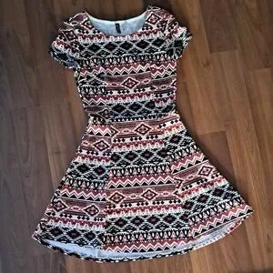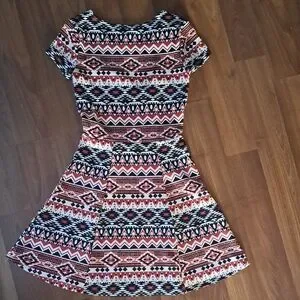 Aztec Patterned Short Sleeve Mini Dress