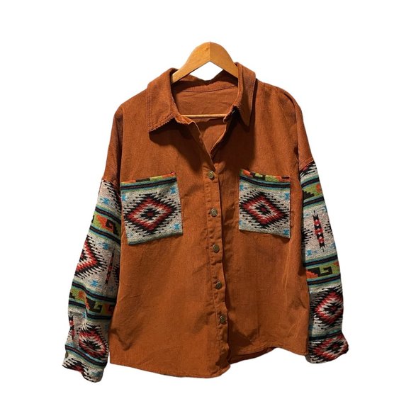 Aztec Print Corduroy Shacket (L)