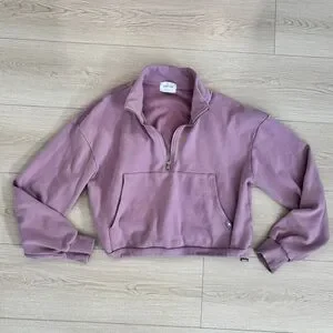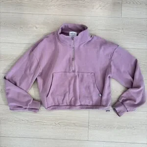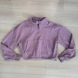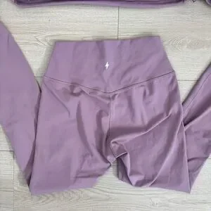 The cropped quarter zip is a size large but fits more like a medium (see pit to pit measurement) and is in used condition but the leggings are new without tags and have never been worn.