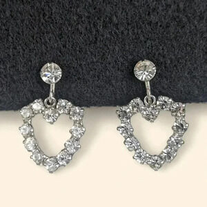 These vintage earrings by B. David are beautiful and VERY sparkly in person. Featuring white rhinestones in a silver tone metal, these rare clip-on beauties are in great shape and are stamped 'B David' on the inside of each clip.