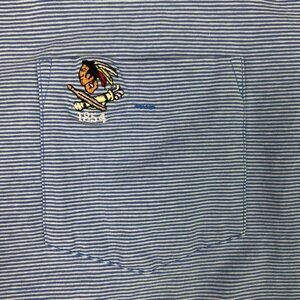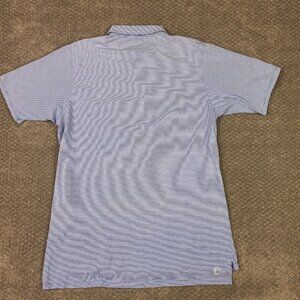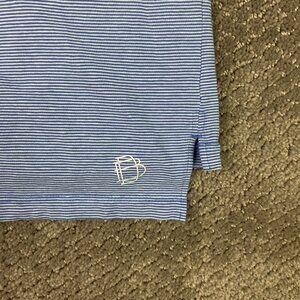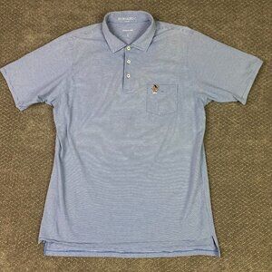B Draddy Polo Shirt Men's Large Blue White Stripes Vin Golf Performance Stretch