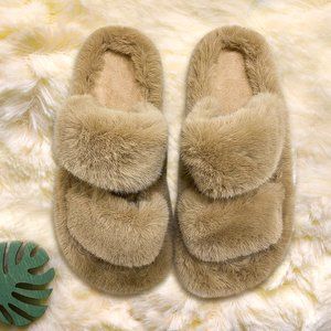 -DESIGN & SIZING: Designed with a stylish, double faux fur straps, these house slippers are perfect for women of all ages. These slippers are available in three sizes and two different colours.