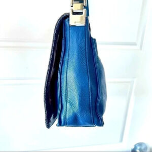 B. MAKOWSKY BLUE LEATHER REPTILE SKIN EMBOSSED PATERN CROSSBODY BAG