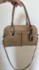 B. Makowsky beige taupe leather handbag with double handles and a detachable cross body strap. Silver tone hardware. Comes with branded dust bag. Metal feet on bottom. Interior is purple satin with one zipper pocket and one open pocket. Exterior has an open pocket on either side. Zipper top closure.