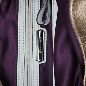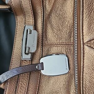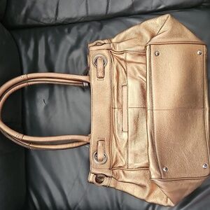 B. Makowsky Pewter Gold Metallic Leather Bag Purse Satchel Handles