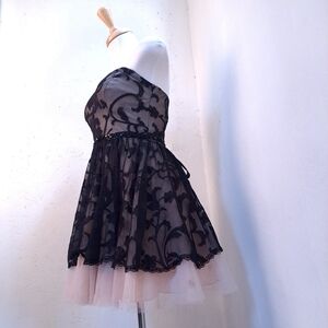 B. SMART | Black & tan tulle strapless mini prom dress