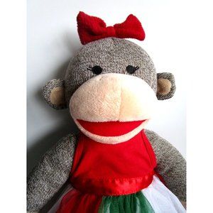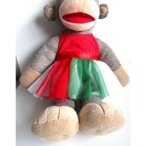 BAB Build a Bear Girl Sock Monkey - Red Bow/Dress 18" Plush Stuffed Animal Toy
