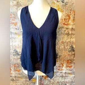 BABATON Aritzia 100% Silk Blue Dressy Ruffled Blouse.