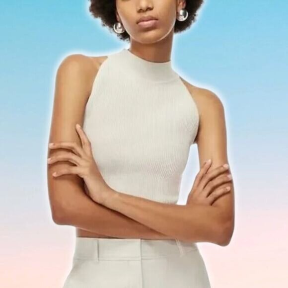 BABATON Aritzia Sculpt Rib-Knit Cropped Halter Top Sz Large Matte Pearl