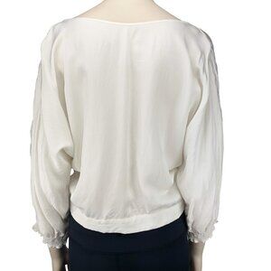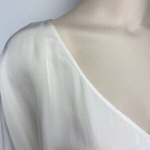 BABATON Aritzia Spring Satin wrap flowy Office White Blouse Sz Large