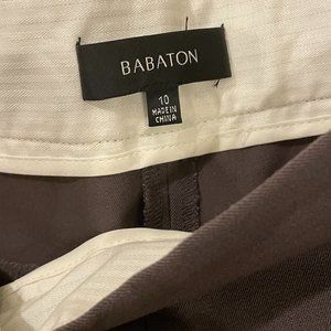 These Babton slacks have a cropped hem, zipper fly on the hip, and smooth back pockets. The colour is a grey, best visible on the first and second photos. The fabric has some stretch and are very comfortable.
