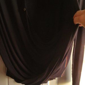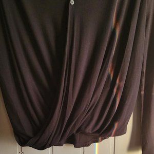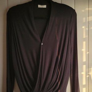 This is a faux wrap effect blouse with a v-neckline and a flowy draped material. Perfect to tuck into your favourite jeans or skirt.