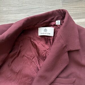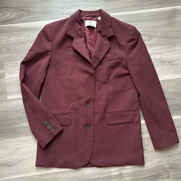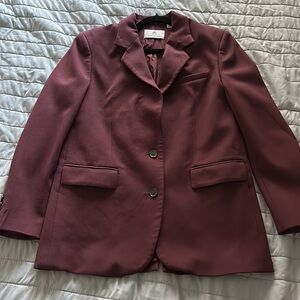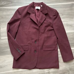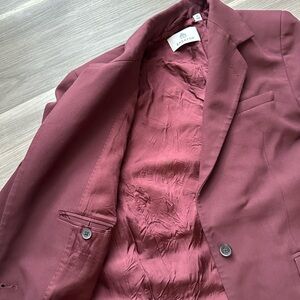 Elevate your style with this elegant burgundy blazer. Perfect for any occasion, it offers a sophisticated look with its rich color and classic design.