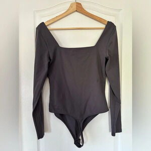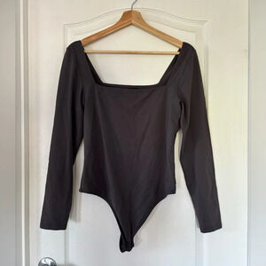 A cult classic for a reason. This is a squareneck longsleeve bodysuit with a thong-cut bottom and double-layer fabric for a supportive fit. It’s made with Contour — luxe, ultra-flattering fabric coveted for its smoothing effect and second-skin feel. Nothing more essential. Hidden Hold Loops keep your bra straps in place and out of sight.
