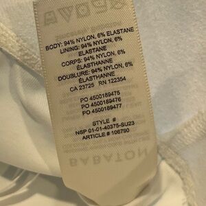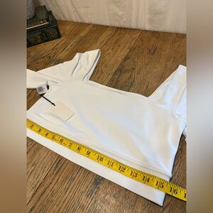 BABATON – White Square Neck Long Sleeve Top Size L (NWT) Crisp and modern white long sleeve crop top by Babaton. Features a structured square neckline, slim fit, and stretch fabric. Logo subtly embossed at the hem. Tag indicates size L. New with tags (NWT). Perfect for a minimalist, chic look. Haut court blanc à manches longues de la marque Babaton, au style épuré et contemporain. Encolure carrée structurée, coupe ajustée, tissu extensible et logo embossé au bas. Taille L indiquée. Neuf avec étiquette (NWT). Idéal pour un look minimaliste et soigné. #babaton #aritzia #hautblanc #nwt #vestiaire&co #poshmark #@eloelo748 #minimaliste #tailleL #lookchic