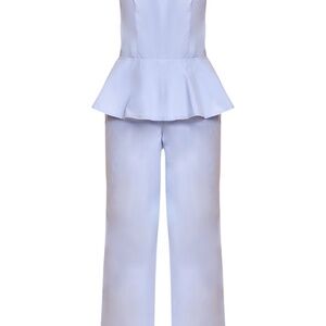 BABY BLUE WOVEN PEPLUM HEM JUMPSUIT