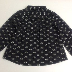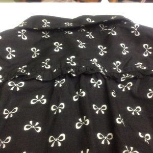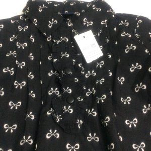 BABY GAP NWT Toddler Size 3T Cutaway Style Collar Top Long-Sleeve Cotton. Black color long sleeves with a white ribbon prints. Cutaway collar and accented with a ruffle trim on the front.