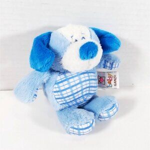 BABY GUNZ Blue Puppy Rattle LOVEY 6" Plush Stuffed w/Plaid Hands feet belly